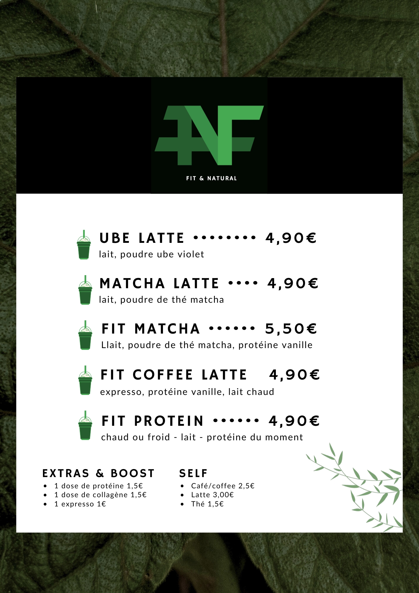 Il commence à faire froid et on a pensé à vous ! Après vos séances, offrez-vous un moment réconfort + énergie avec nos latte chaud, matcha et boissons protéinées. Des boissons parfaites, à déguster sur place, ou à emporter **